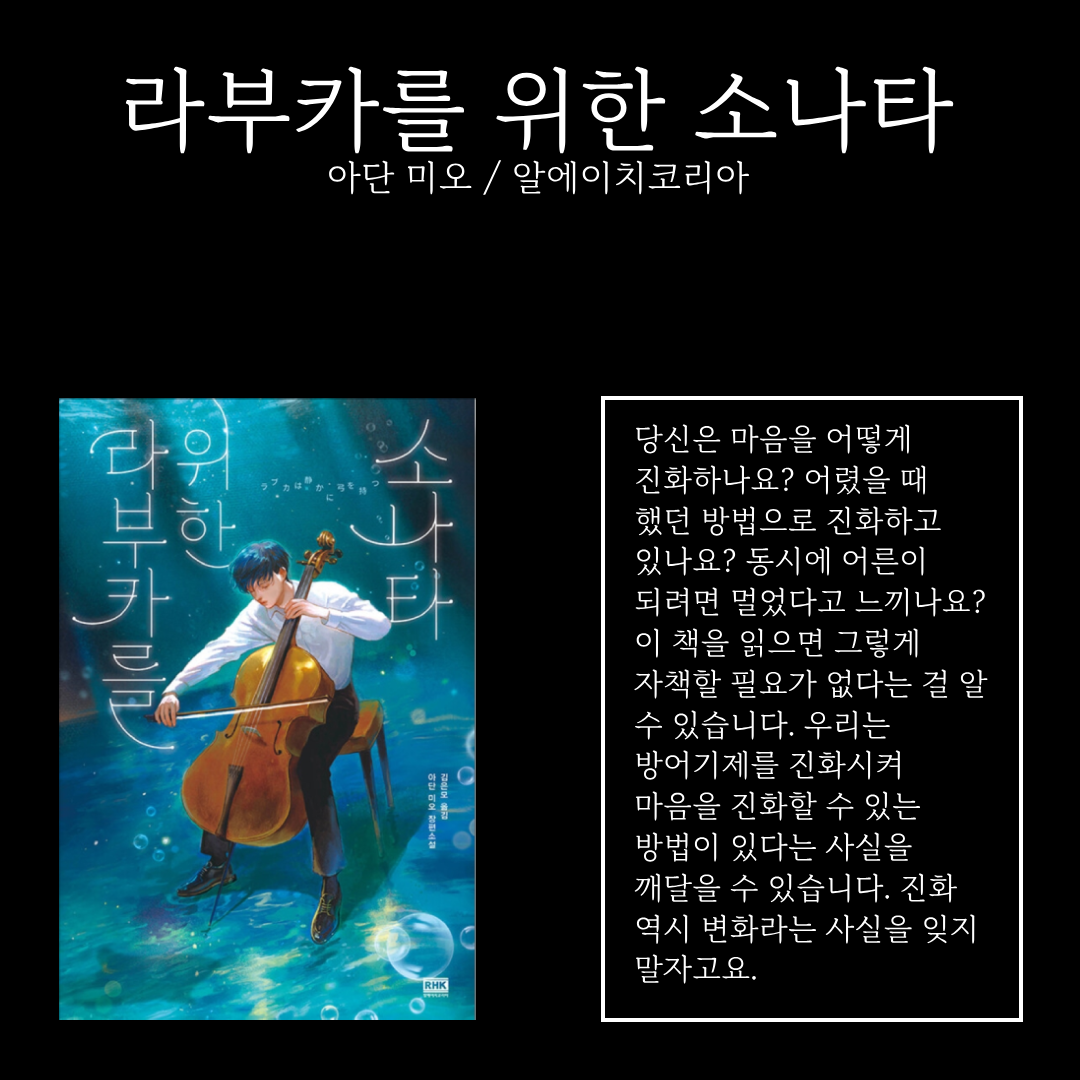 그의 꿈은 늘 암흑이었습니다. 실체를 알 수 없었습니다. 그런데 첼로를 다시 다루면서 꿈은 조금씩 변화합니다. 잊을 수 없는 그 날의 상황을 구체적으로 보여줍니다. 꿈이 구체적으로 변화할수록 그는 두렵습니다. 하지만 그 날과 다른, 첼로가 맺어준 새로운 환경은 그에게 희망을 줍니다. 트라우마와 직시할 기회입니다. 첼로를 능숙하게 연주하게 될수록 그 날의 기억이 두렵지 않습니다. 업무를 위해 다룬 첼로가 불투명한 꿈의 파편을 자신을 받쳐주는 기둥으로 탈바꿈했습니다. 첼로를 매개로 그는 기억을 진화했고, 자신의 삶에 첼로가 새롭게 자리잡을 수 있도록 진화했습니다.
