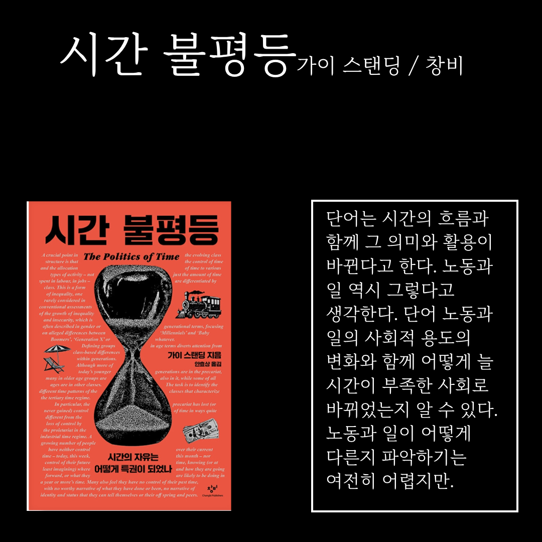 우연히 소셜미디어에서 <시간불평등>이라는 제목을 봤습니다. 신선했습니다. 과거에 자기계발서를 많이 읽었습니다. 주로 에세이 형식이었습니다. 대부분의 책에서 자주 접했던 문장이 ‘시간은 모두에게 공평하게 주어져 있다’라는 문장이었습니다. 누구에게나 하루는 24시간이 주어져 있으므로 다른 이들보다 배로 노력하며 계발을 해야 한다는 내용이었습니다. 이런 내용을 자주 읽다 보니 잠을 많이 자는 건가, 너무 쉬려고만 하나 생각하며 노동 이외에 꿈을 이루기 위한 무엇을 하려고 노력했습니다. 그래서인지 늘 피곤했고, 잠시 쉬는 틈에는 불안을 느꼈습니다. 그런데 시간이 불평등하다니! 지금까지 믿어온 명제를 흔들리게 해서 읽었습니다.
